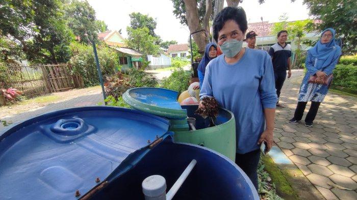 Ia bersama puluhan ibu-ibu di lingkungan tersebut baru saja menyelesaikan pembuatan kompos. Mereka tampak rukun bersama-sama mencacah sampah itu dan memasukkannya ke dalam tong tempat penyimpanan.