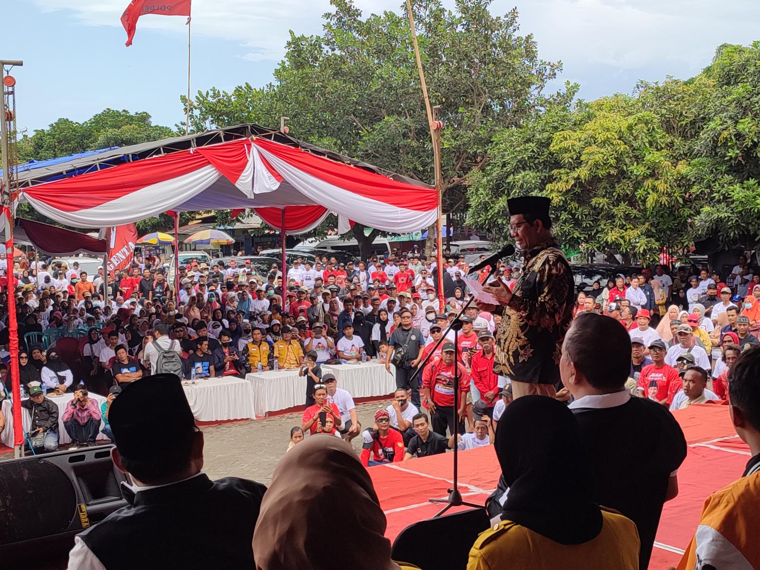Salah satu lokasi Mahfud berkampanye berada di Lapangan Untung Suropati Tembokrejo, Kecamatan Muncar.