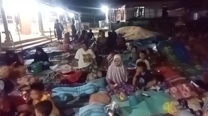 Banyak warga yang sementara memilih untuk mengungsi dan tinggal di halaman rumah mereka.