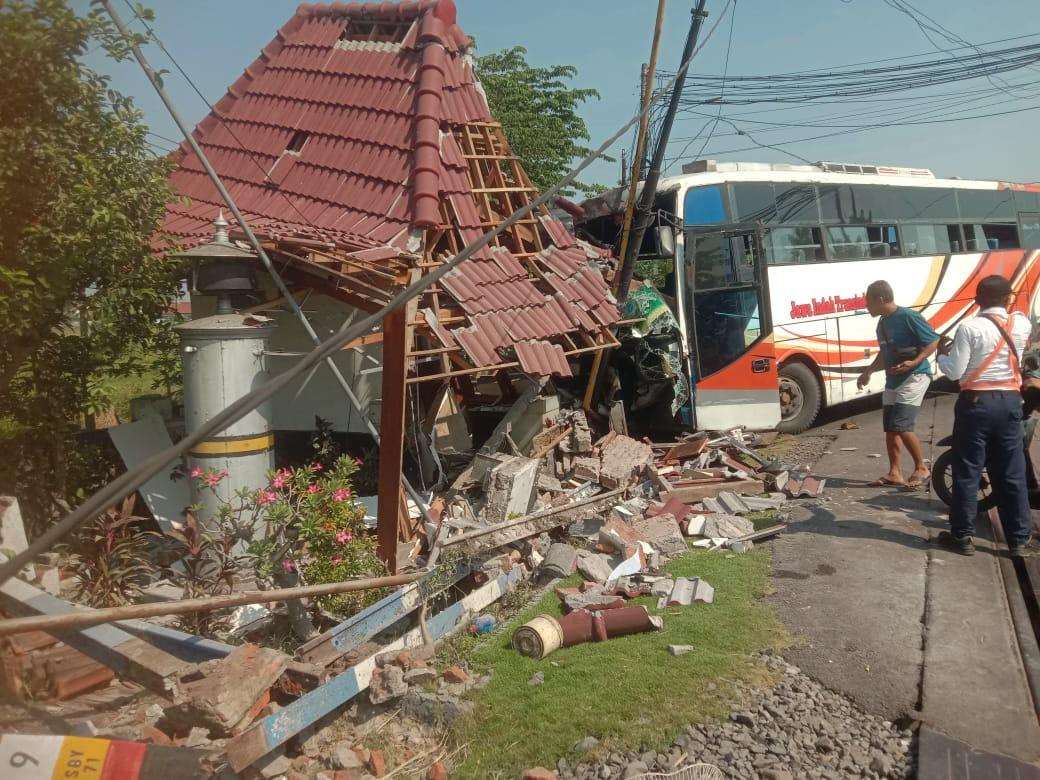 Pos Jaga Lintasan (PJL) kereta api nomor 150 yang berada di Jalan raya Pasuruan - Probolinggo rusak akibat ditabrak bus
