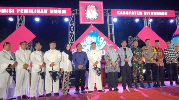 Peluncuran maskot dan jinggel KPU yang berlangsung di Alun-alun Situbondo, sebagai tanda dimulainya tahapan Pilkada serentak Tahun 2024.