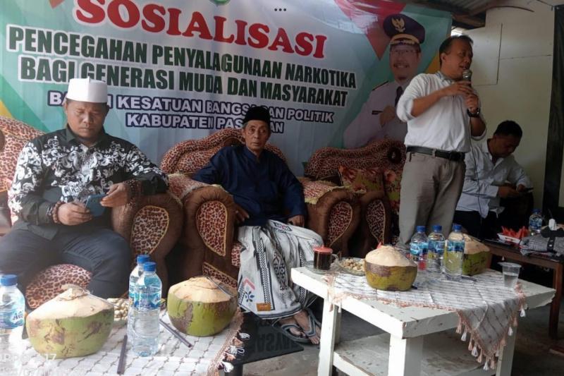 Badan Kesatuan Bangsa dan Politik (Bakesbangpol) Kabupaten Pasuruan terus menggelar sosialisasi untuk menekan peredaran narkoba di Pasuruan