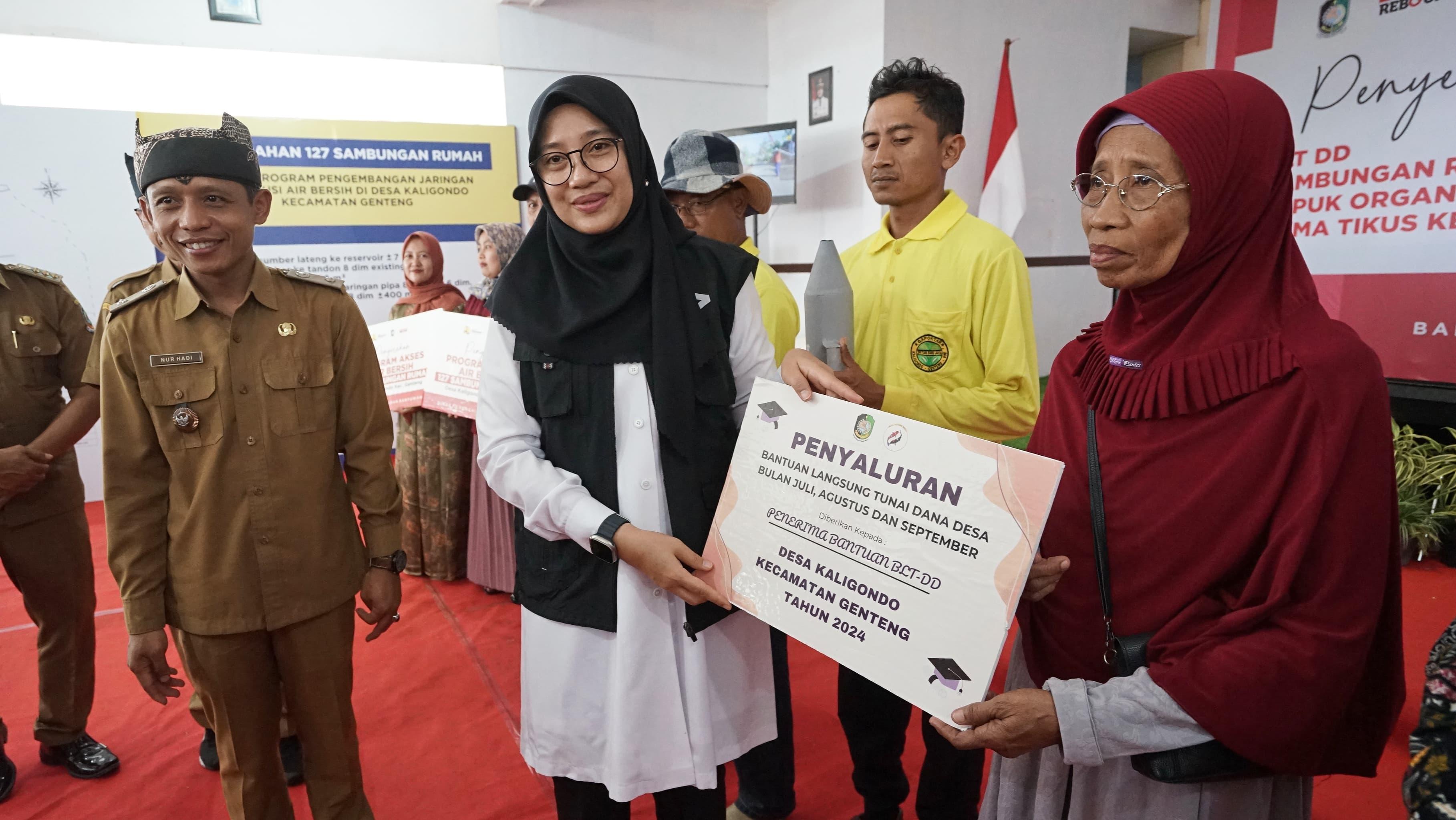Selain itu, di Desa Kaligondo, Ipuk menyalurkan bantuan sosial BLT Dana Desa kepada ratusan keluarga penerima manfaat (KPM). Dalam penyaluran kali ini masing-masing KPM menerima BLT DD untuk tiga bulan (Juli-September) senilai total Rp. 900 ribu.