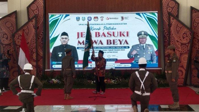 Kirab pataka dalam rangka memperimgati Hari Jadi Provinsi Jatim ke-79 dan Sigap Pilkada Damai tahun 2024 ini diserahkan dan diterima oleh Asisten 1 Pemkab Situbondo, Pri Handoko.