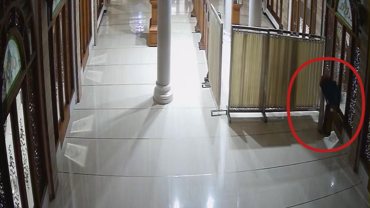 Dalam rekaman CCTV terlihat, seorang pria tengah masuk area masjid dari sisi utara masjid. Kemudian ia tampak mencari keberadaan kotak amal di dalam masjid tersebut.